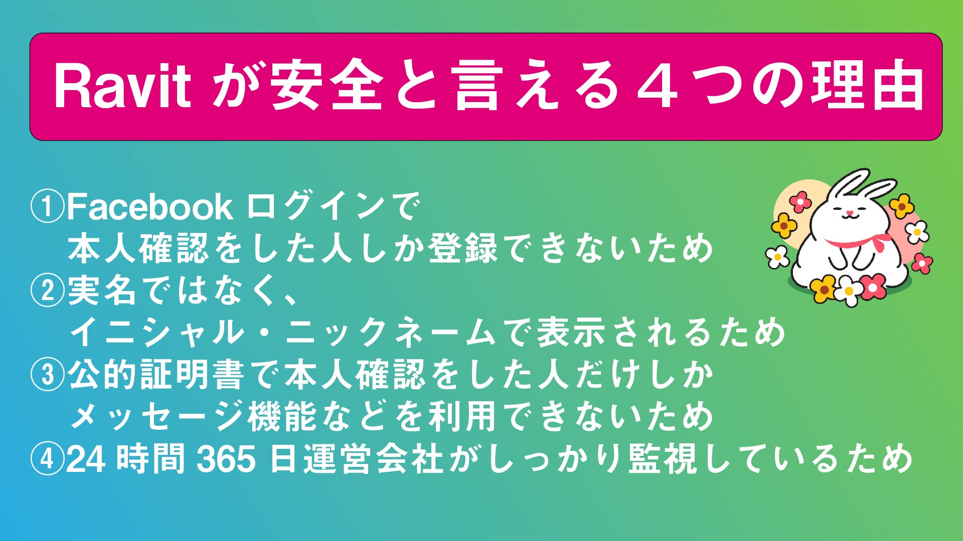 みなさんも安心してRavitを活用して素敵な恋人を見つけてくださいね。